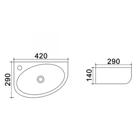 Раковина угловая Azario 42х29х14 фаянс, цвет Белый (AZ4519A)