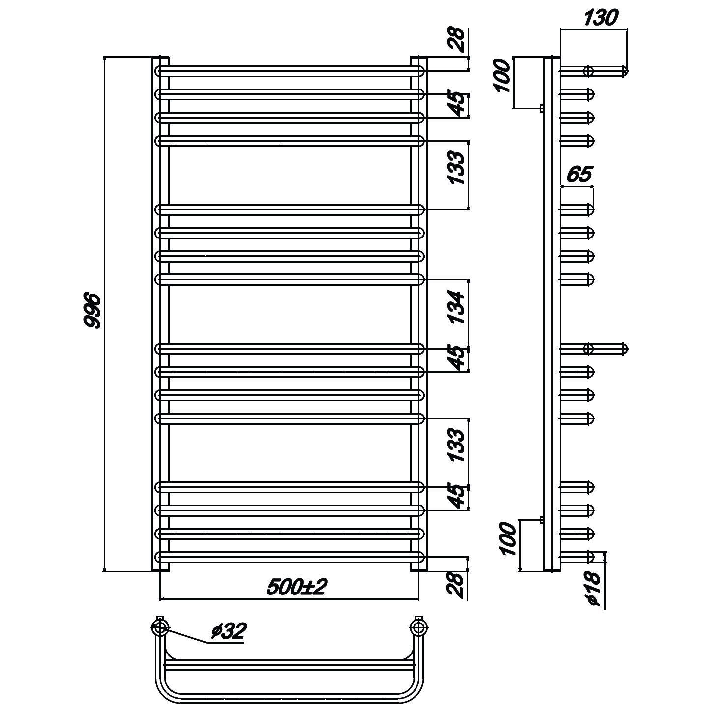 - Конструкция: вертикальные стойки 32х32 мм горизонтальные перекладины ø18
