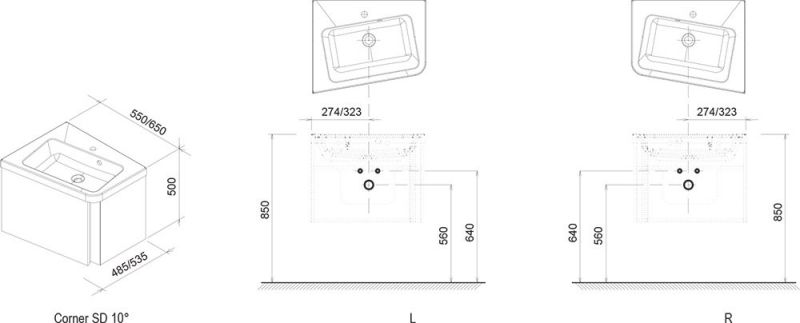 Ravak Тумба под умывальник SD 10° 650 L серая