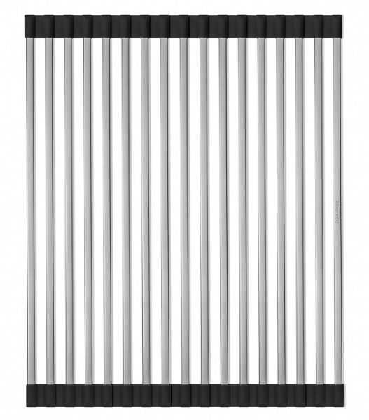 Ролл-мат для кухонных моек, R405-BS.330*405 ммРолл-мат PRO R405 от Paulmark — это универсальный и многофункциональный ролл-мат 330*405 мм из нержавеющей стали. Он может быть использован в качестве подставки для горячей посуды, сушилки для овощей и фруктов или коврика для разморозки продуктов. Благодаря двусторонним силиконовым наконечникам, ролл-мат защищает поверхность и может быть размещен на столешнице, крыле мойки или в специальных направляющих чаши кухонной мойки.