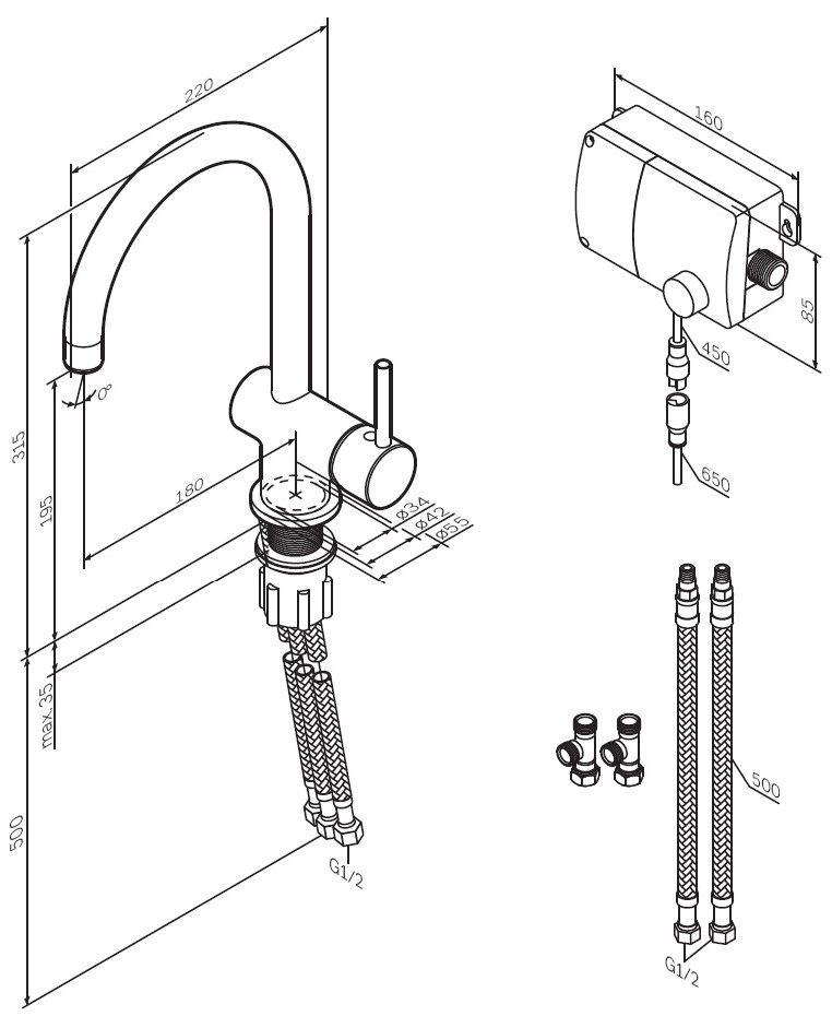 Смеситель обладает возможностью включения и выключения с помощью сенсора