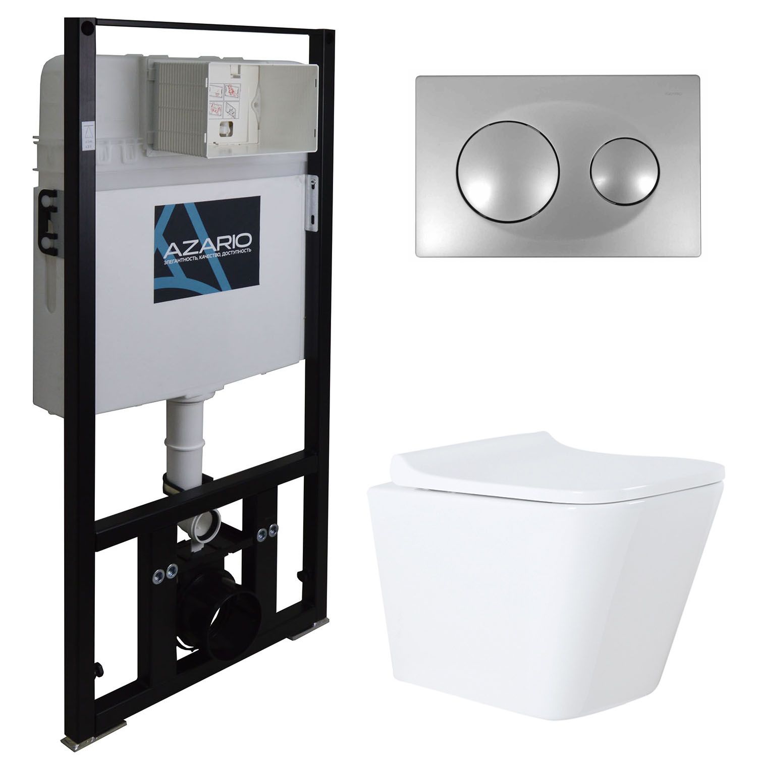 Сет AZARIO Teramo инсталляция + унитаз (квадратный) с быстросъемным сидением микролифт + клавиша смыва хром глянцевый купить