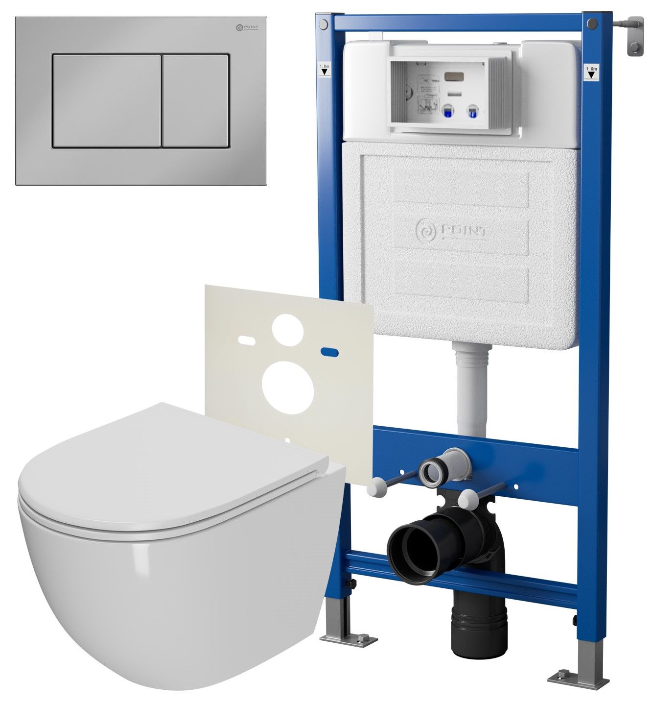 Сет: Система инсталляции Point Элемент для подвесного унитаза PN45120 + Клавиша смыва для инсталляции Point Ника, хром, PN44081C + Унитаз подвесной Point Афина безободковый, сиденье микролифт PN41041