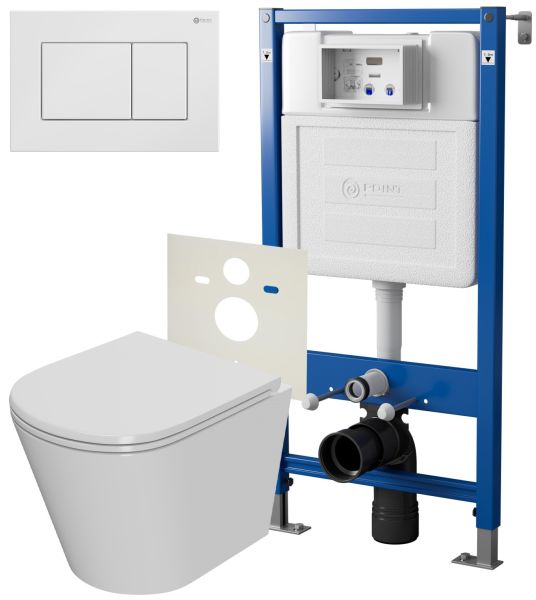 Сет: Система инсталляции Point Элемент для подвесного унитаза PN45120 + Клавиша смыва для инсталляции Point Ника, белая, PN44081W + Унитаз подвесной Point Виктория безободковый, сиденье микролифт PN41061