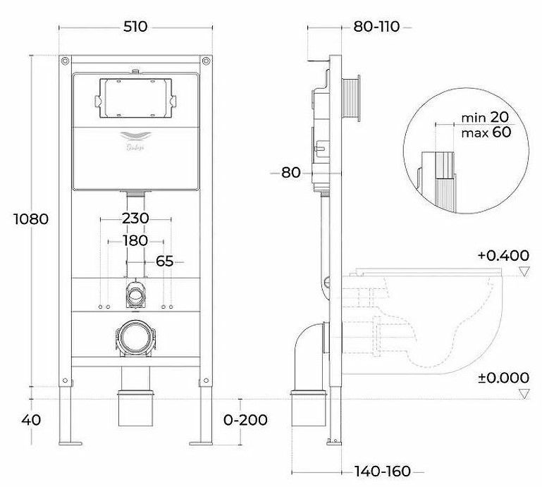 Размеры инсталляции (ШхВхГ): 510х1280х160 мм.