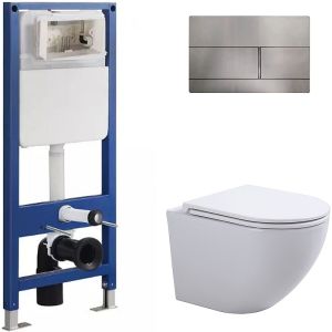 Сет Sintesi SIN-CCI-SMP-101,SIN-FB-DSS-507,SIN-TS-EVI-151: инсталляция кнопка смыва нержавеющая сталь унитаз Evi белый крышка-сиденье белая