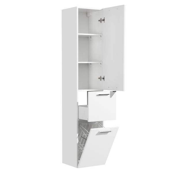 Шкаф-пенал Акватон Инди с бельевой корзиной не только не только функциональный предмет интерьера ванной комнаты, но бесподобное эргономичное дополнение дизайна, как небольшого, так и крупного помещения. Подвесной способ установки дает возможность не только визуально увеличить пространство, но и обеспечивает быстрый и удобный доступ для уборки.Компания Акватон использует при производстве высококачественные водоотталкивающие материалы (ДСП), соответствующие всем необходимым требованиям безопасности. Серия Инди отличается превосходным дизайном с соблюдением всех значимых элементов современного стиля. Основным цветом, в котором выполнен шкаф-пенал Акватон Инди является белый, отлично подходящий большинству дизайнерских решений. Шкаф-пенал предусматривает удобную и вместительную систему хранения, состоящую из дверей, ящиков. Качественные доводчики позволяют обеспечить мягкое и тихое закрывание. Ключевые габариты изделия: ширина 34 см, глубина 32 см, высота 164.7 см.Страной бренда Акватон является Россия, все товары производятся с выполнением соответствующих стандартов качества, что позволяет быть полностью уверенными в долговечности и надежности. Шкаф-пенал Акватон Инди с бельевой корзиной правильный выбор в современном дизайне ванной, придающий уникальность всему помещению, при этом сохраняя функциональность.