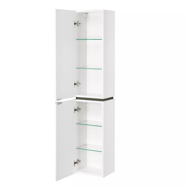 Подвесная шкаф-колонна Скай сочетает в себе ультра-белые глянцевые фасады с декоративной вставкой в цвете "серый кашемир". Чистоту линий фасадов подчеркивают эргономичные хромированные ручки. Корпус модели выполнен из высококачественной влагостойкой ЛДСП, фасады - из МДФ в пленке "белый глянец", что позволяет защитить поверхность от внешних воздействий. Петли данного шкафа расположены слева и оснащены интегрированным механизмом плавного довода, который обеспечивает мягкое и бесшумное закрывание дверок.
