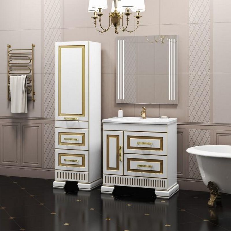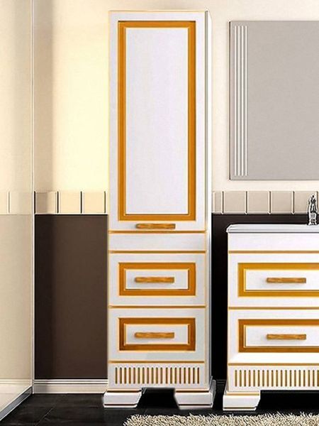 Шкаф-колонна Opadiris Оникс 50 L Z0000005741 Белый глянцевый с золотой патиной