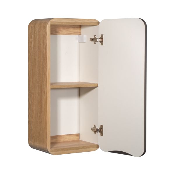 Шкаф навесной для ванной RUNO НИЦЦА - сочетание безупречного стиля и современных тенденций в дизайнерском оформлении ванной комнаты. Шкаф с обтекаемыми формами станет прекрасным дополнением в интерьере Вашей ванной комнаты, выполнен в сочетании корпуса с текстурой светлого натурального дерева с фасадами цвета графит. Плавные линии в сочетании с фактурным покрытием сделают обстановку вашей ванной максимально теплой и уютной. Придаст изысканность и завершенность домашней обстановке. Шкаф оснащен одной распашной дверцей правого открывания и выдвижным ящиком с бесшумными шариковыми направляющими полного выдвижения, навесами для крепления к стене. Внутри шкафа две внутренние полки. Функцию ручки выполняет декоративный вырез. Фасады и корпус шкафа изготовлены из МДФ. Мебель для ванной RUNO - красота и практичность в мелочах! Цвет товара на мониторе может отличаться от реальных цветов, это зависит от настроек цветового профиля и разрешения Вашего монитора или мобильного устройства.