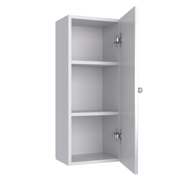 Шкаф навесной с одной распашной дверкой, за которой - две встроенные полки. Петли со встроенным доводчиком, ручка - 1шт, навесы 2шт. Универсальный.