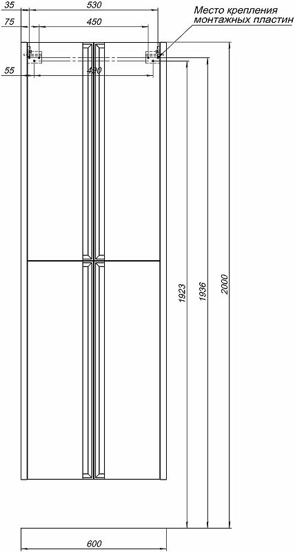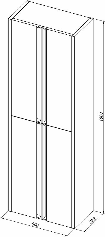 Габариты (ШхВхГ): 600х1800х322 мм.