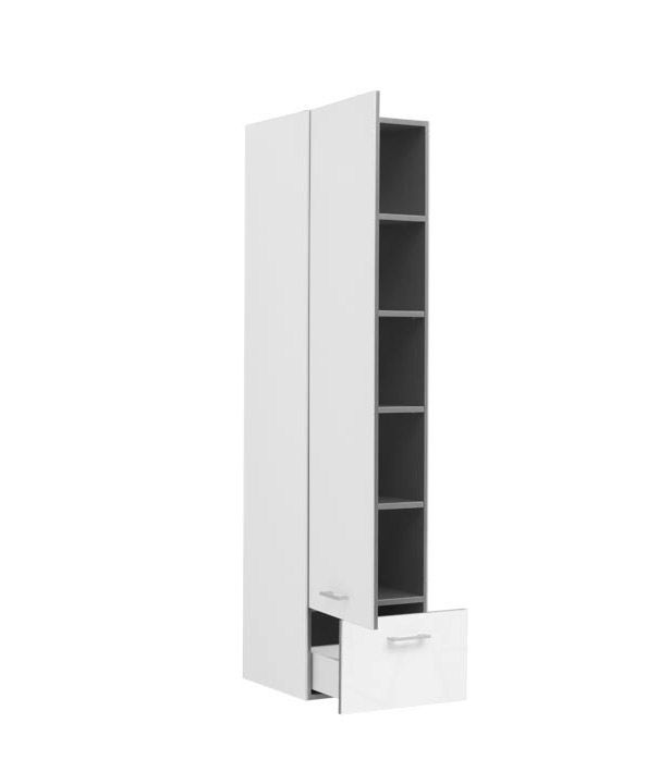 Элегантный навесной пенал Верона — олицетворение простоты и функционализма. Отсутствие лишнего декора и строгие, классические формы шкафа позволят вписать его в любой интерьер, а нейтральный оттенок будет хорошо сочетаться с любыми, даже самыми яркими цветами и узорами. В верхней части пенала расположено большое отделение с распашной дверцей, снизу предусмотрен компактный выдвижной ящик.