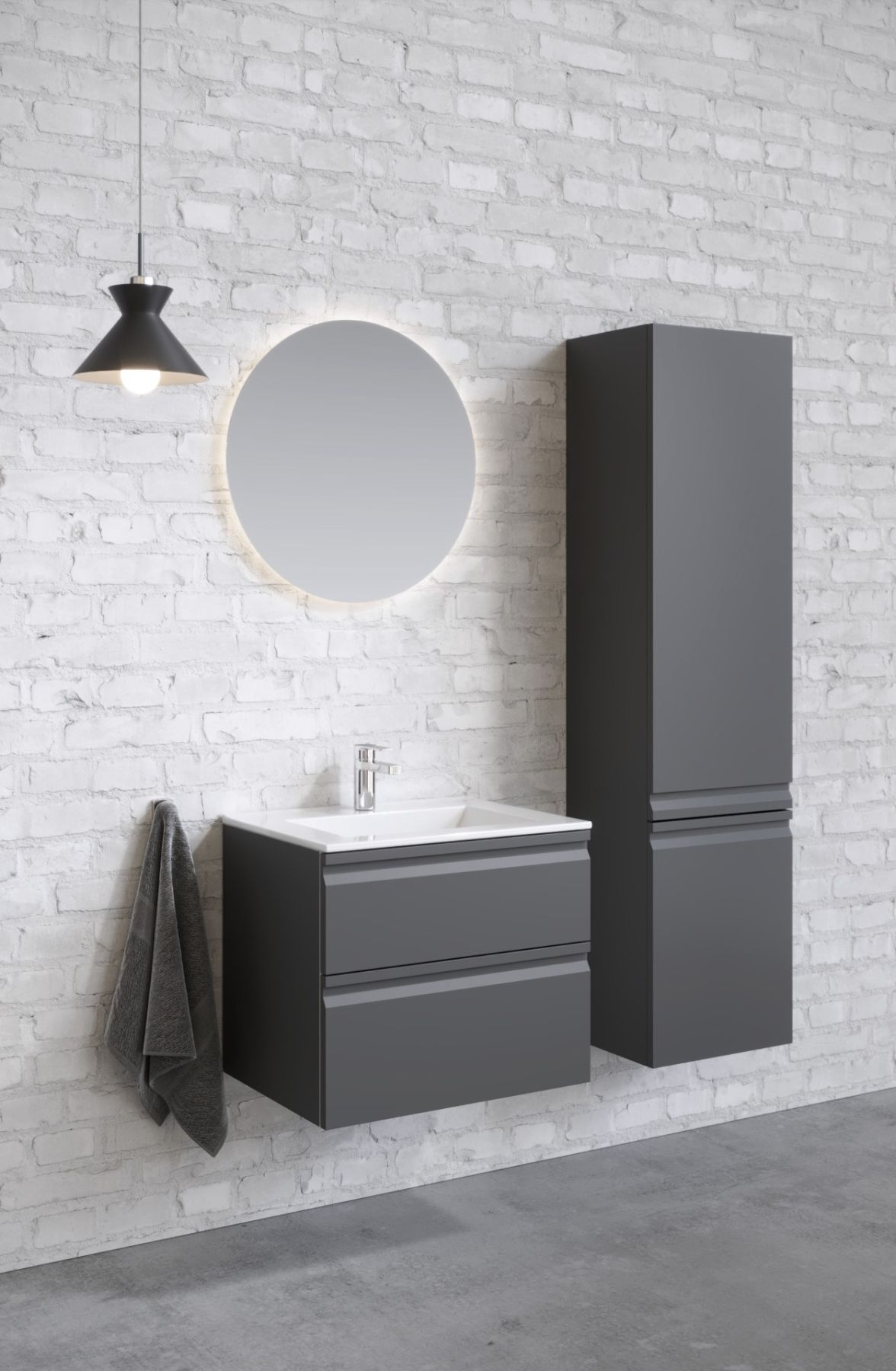 Шкаф пенал для ванной Aquatek AQ70035L-MG петли слева серый матовый