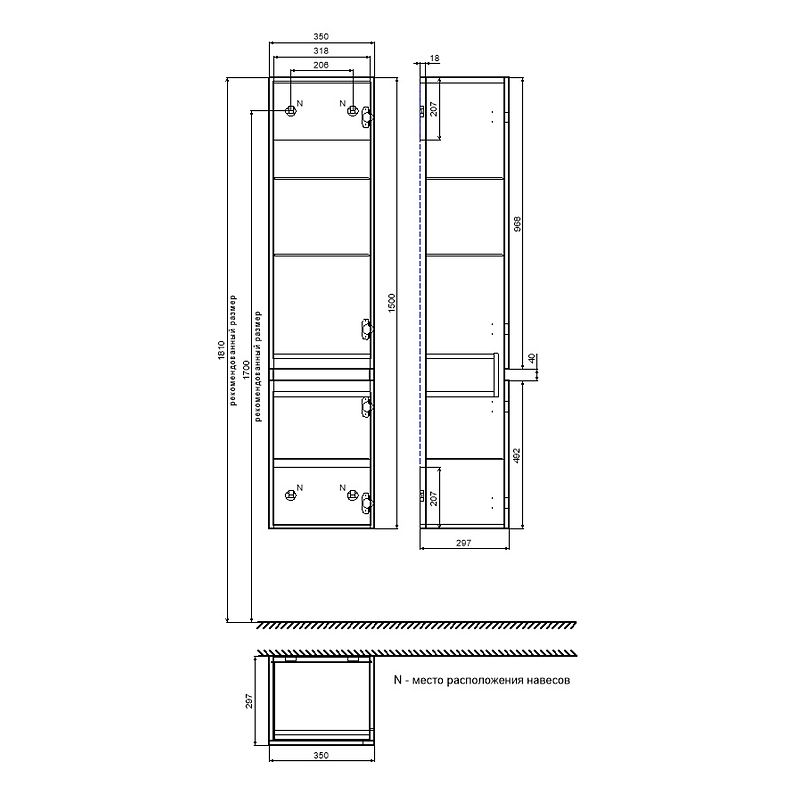 Размеры (ШхВхГ): 35х1500х297 мм.