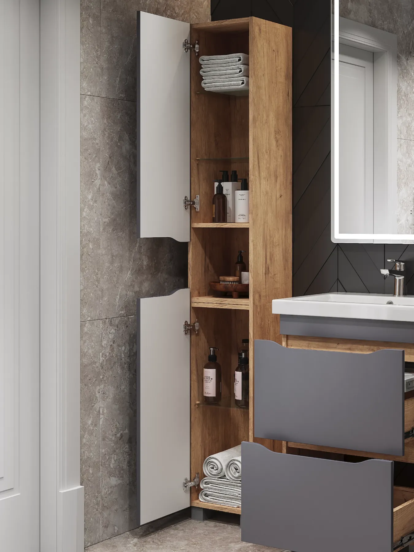 Шкаф-пенал напольный Vigo Wave 348 поставляется в разобранном виде дуб золотой