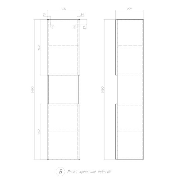 Шкаф-пенал подвесной Vigo Yuma 345 поставляется в разобранном виде дуб давос