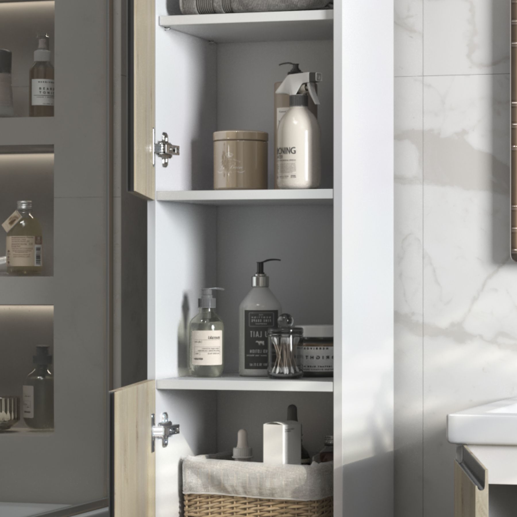 Шкаф-пенал VIGO Yuma 35 подвесной 345 дуб давос. Комплектация: корпус, 2 дверцы, петли с механизмом доводчика, 4 полки ЛДСП. Поставляется в разобранном виде.