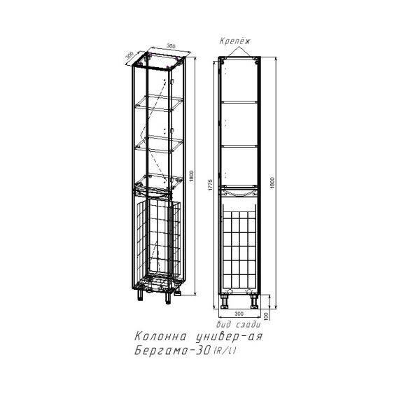 Шкаф-пенал Style Line El Fante Бергамо Люкс антискрейтч Plus, 30 см, напольный, с корзиной, черный, петли справа/слеваОсновные характеристики:Шкаф-пенал с корзиной