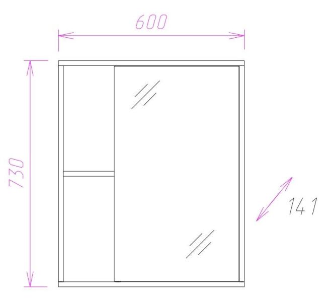 Шкаф максимально удобен в использовании: пространство за зеркальной дверцей с механизмом плавного закрывания, разделенное двумя горизонтальными полочками, позволяет компактно разместить бытовые принадлежности. 2 открытые полочки созданы специально для хранения часто используемых вещей.