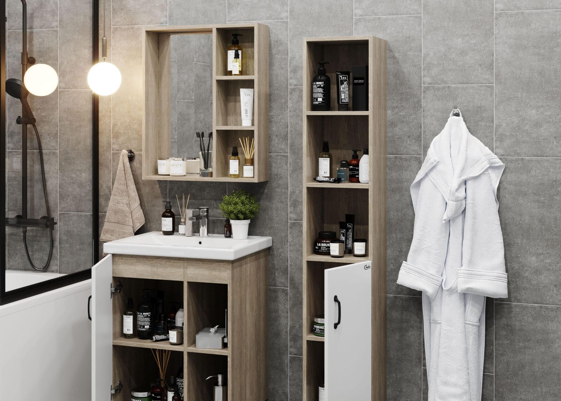 Зеркальный шкаф Onika ТИМБЕР 60 отражает современные тенденции в дизайне мебели для ванных комнат: минимализм с простыми и понятными формами, цвета дуба с роскошной текстурой, отсутствие лишних деталей.