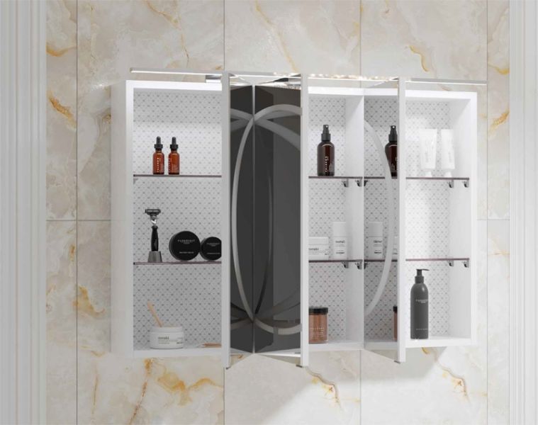 Подвесной зеркальный шкаф Clarberg Dune 100 DUN0410 с серебряной амальгамой, с тремя распашными дверцами и двумя полками внутри.Для использования в ванных комнатах с повышенной влажностью.