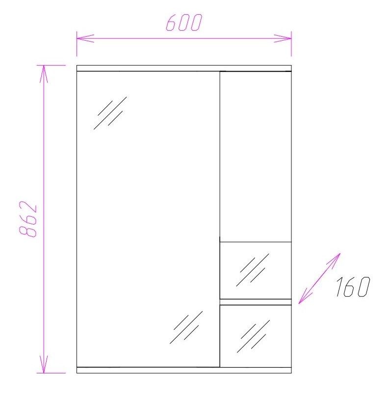 Шкаф-зеркало с подсветкой Onika Элита 206020 правый 60см белый купить
