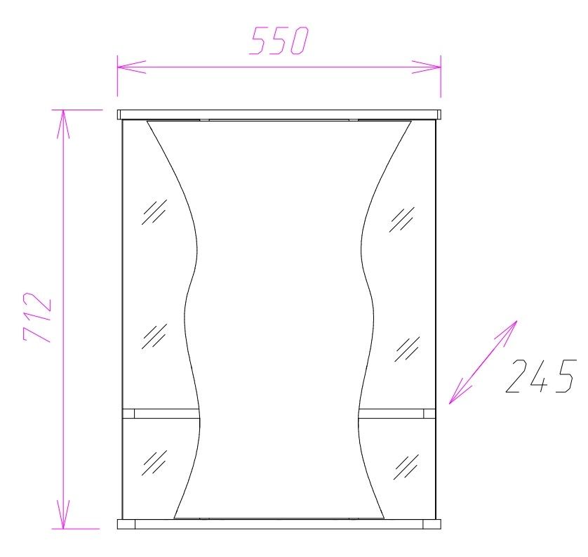 Корпус шкафа-зеркала выполнен из ЛДСП, фасад - из ЛДСП и ЛМДФ в пленке, устойчивых к механическим воздействиям.