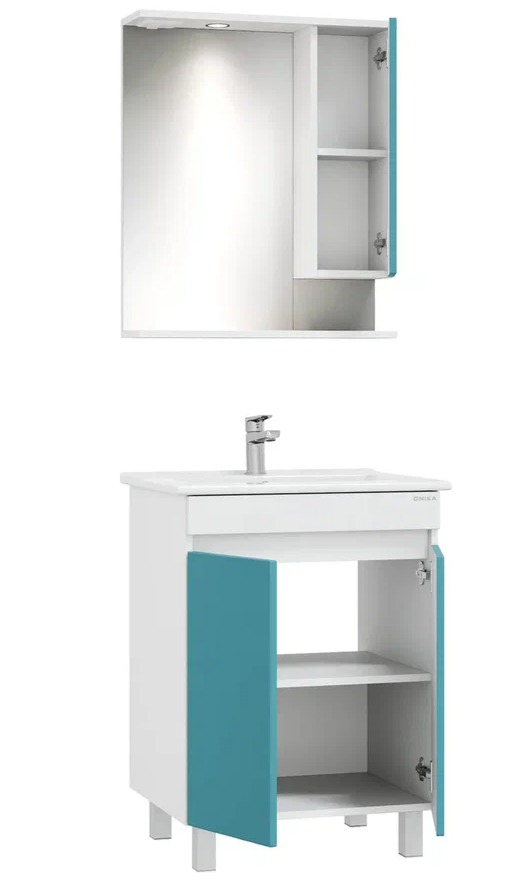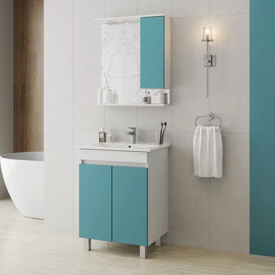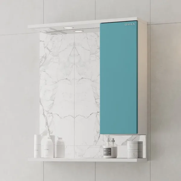 Шкаф-зеркало с подсветкой Onika Марви 206089 правый 60см бирюза