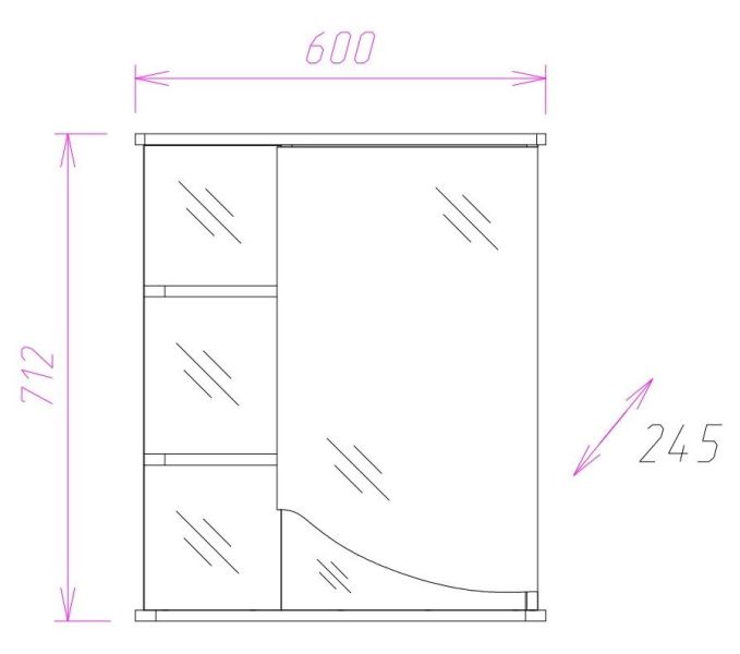 Навесной зеркальный шкаф Onika ВИОЛА 60 в правом исполнении подойдет к любому стилю ванной комнаты и будет прекрасно гармонировать с любой мебелью в том же глянцевом белом цвете.