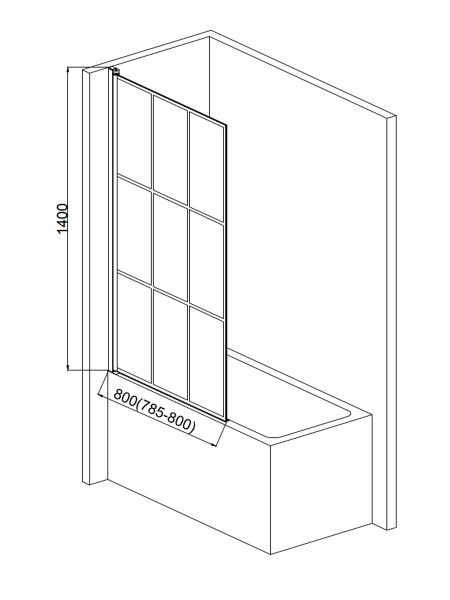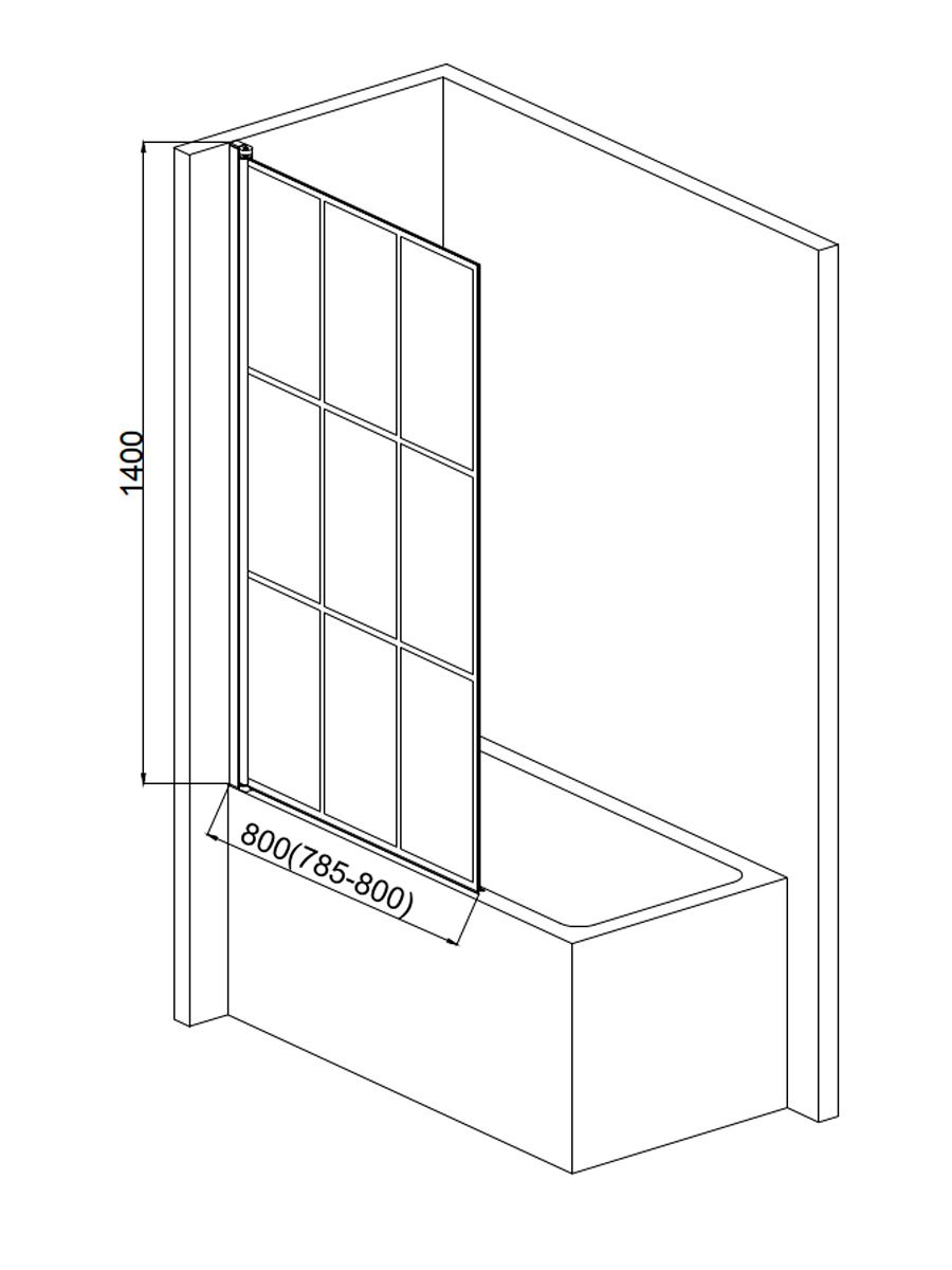 Шторка на ванну AQUAme AQM2858-L левая 80см чёрный матовый