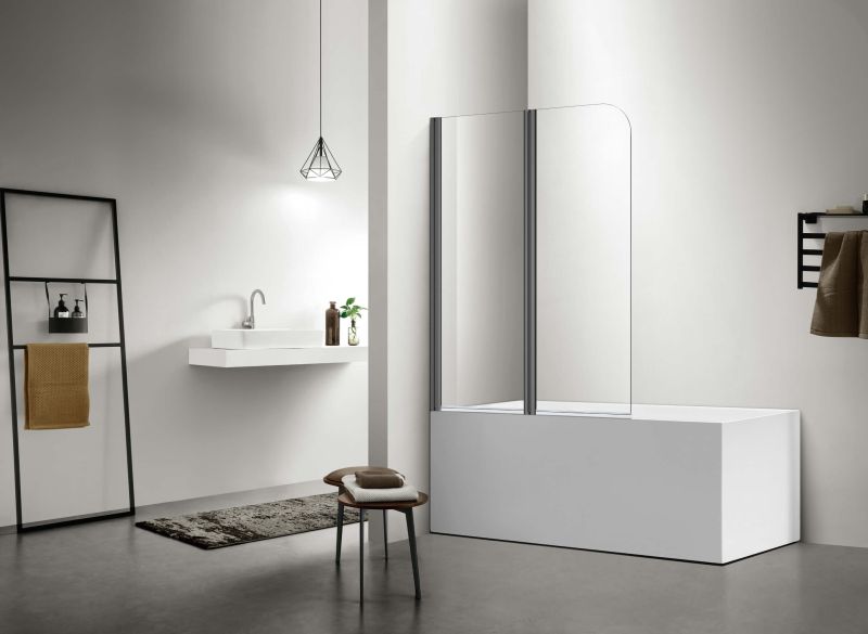 Шторка на ванну Aquatek Дельта AQ DEL SBA 10015GM двухэлементная поворотная 100 см оружейная сталь