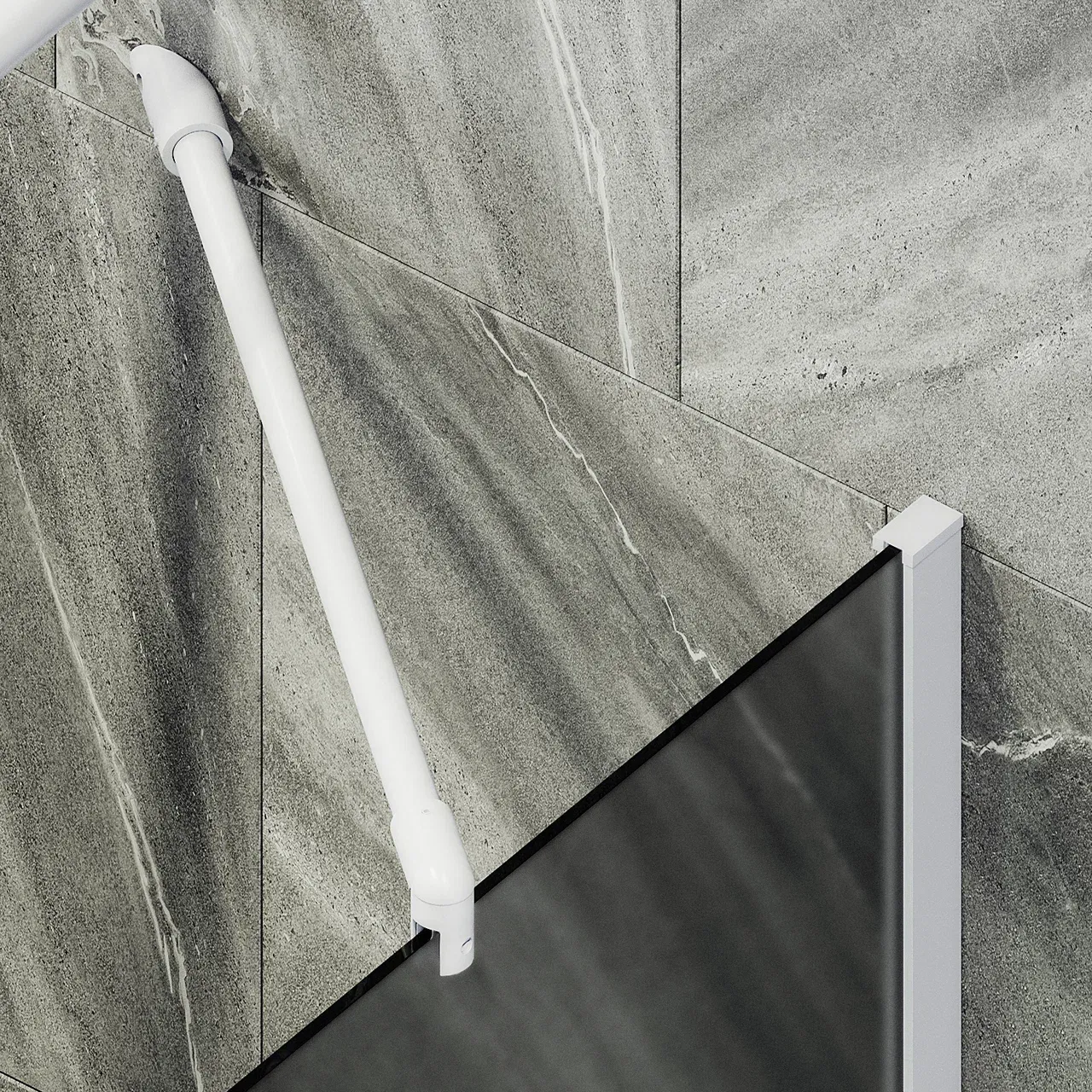Монтаж осуществляется с помощью алюминиевого профиля, что обеспечивает надежность крепления и безопасность использования стеклянной перегородки для ванной. Также, шторка оснащена специальным уплотнителем, который предотвращает попадание воды на пол ванной комнаты. Закаленное стекло, цвет Графит матовый, толщина 8 мм 1400х300 мм - 1 шт.