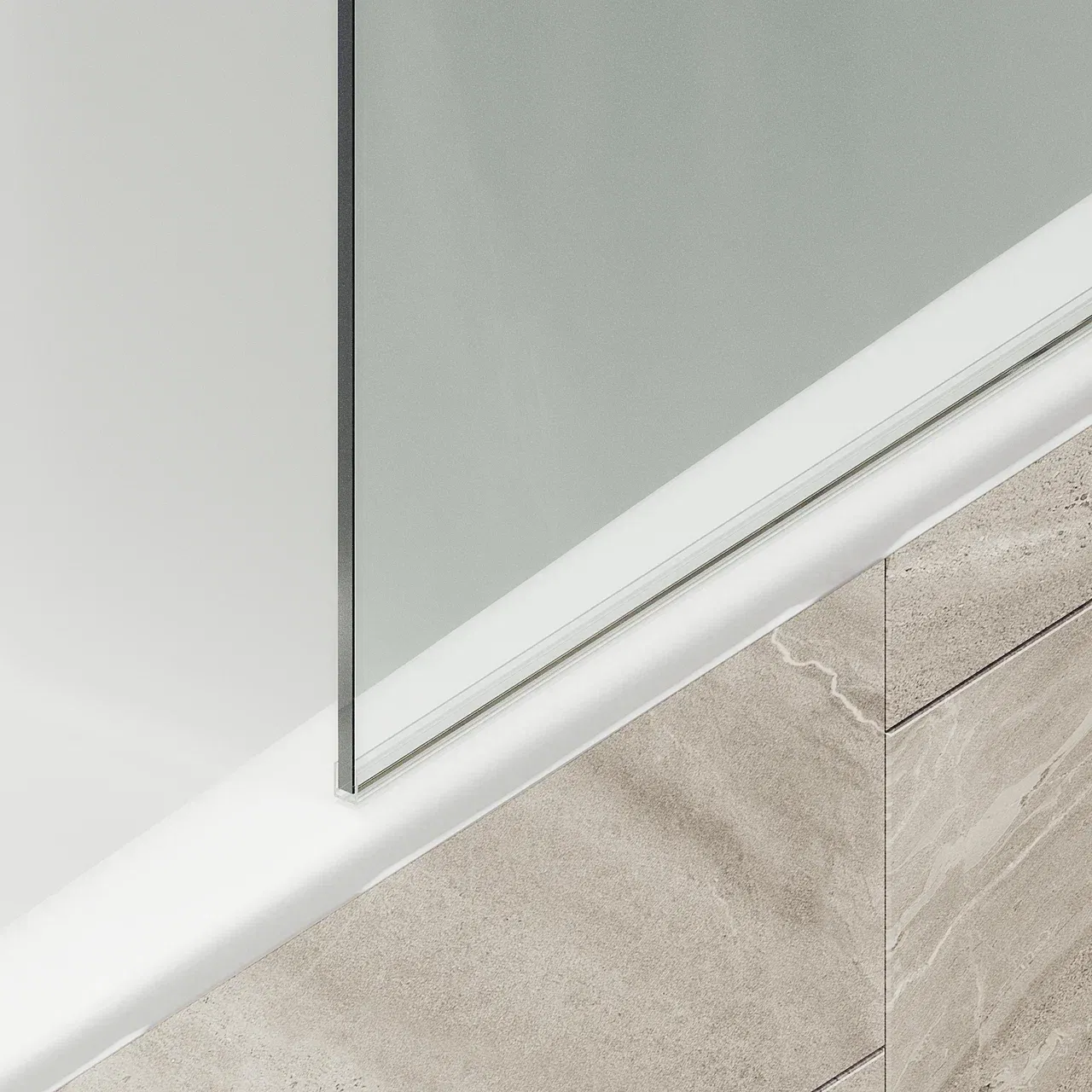 Монтаж осуществляется с помощью алюминиевого профиля, что обеспечивает надежность крепления и безопасность использования стеклянной перегородки для ванной. Также, шторка оснащена специальным уплотнителем, который предотвращает попадание воды на пол ванной комнаты. Закаленное стекло, цвет Бесцветное, толщина 8 мм 1400х800 мм - 1 шт.