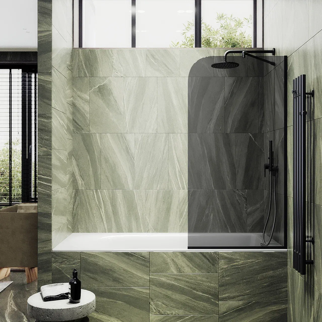 Монтаж осуществляется с помощью алюминиевого профиля, что обеспечивает надежность крепления и безопасность использования стеклянной перегородки для ванной. Также, шторка оснащена специальным уплотнителем, который предотвращает попадание воды на пол ванной комнаты. Закаленное стекло, цвет Графит,толщина 8 мм 1400х700 мм - 1 шт.