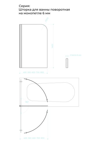 Шторка на ванну на монопетле by Deonria C-140-80-6-T-B 80см чёрный/прозрачный купить