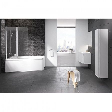 Качественная стеклянная штора, согласованная по дизайну с концепцией 10°. Поворотный механизм позволяет складывать штору как вовнутрь ванны, так и наружу, что в свою очередь облегчает уход за стеклом и предоставляет широкий вход в ванну.