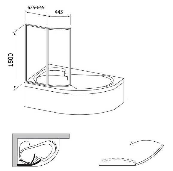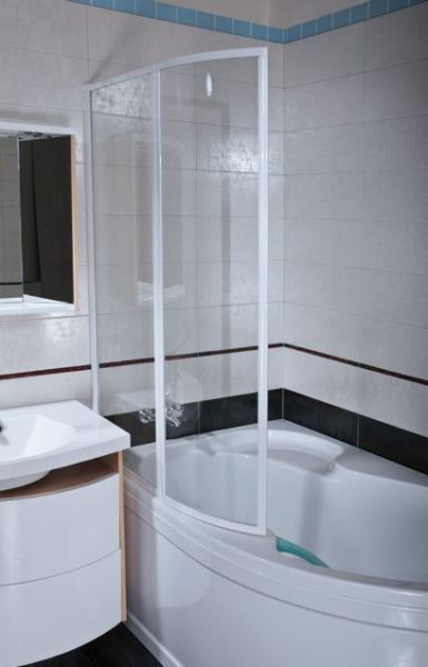 Для установки шторки понадобится лишь нескольких шурупов. Ее можно монтировать в готовую ванную комнату.Материал полотна двери:полистирол