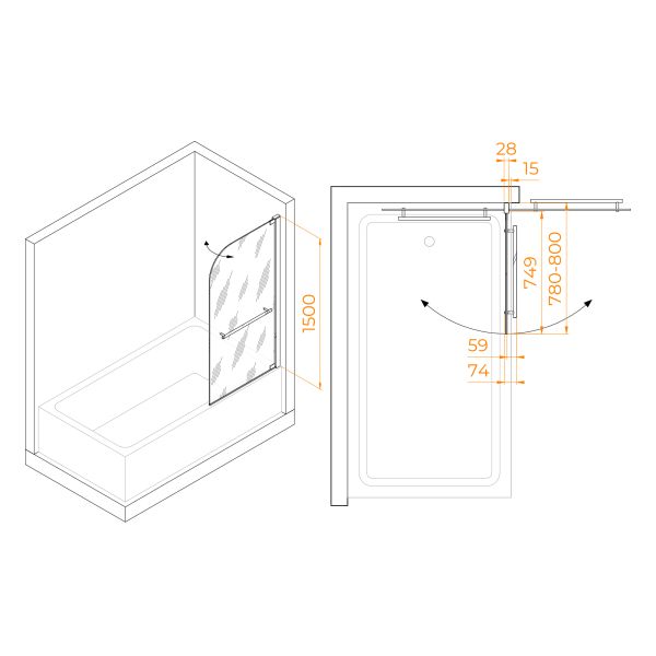 Шторка на ванну RGW SC-02 03110208-11 80см хром