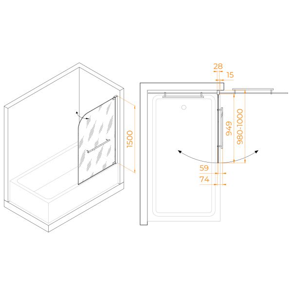 Шторка на ванну RGW SC-02 03110210-11 100см хром