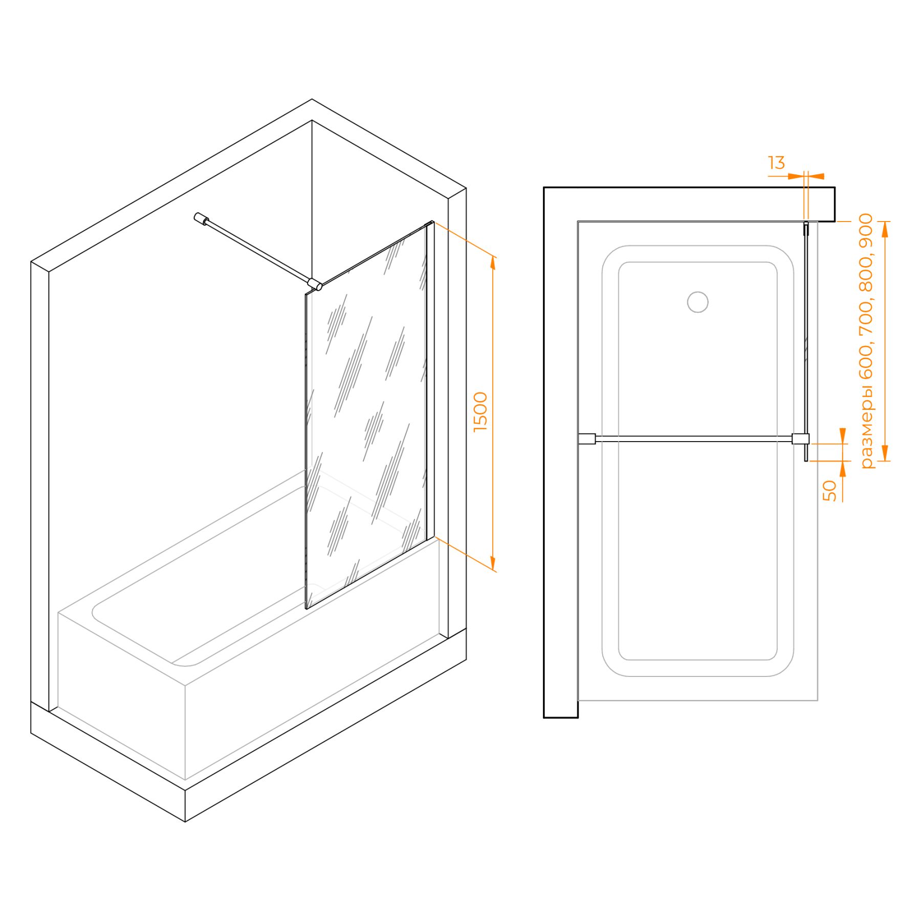 Шторка на ванну RGW SC-051 351105107-11 70см хром купить