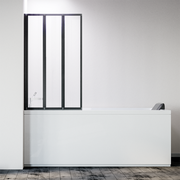Шторка на ванну складная левая Veconi Palau, PL-73BL, 1200x1500, черный матовый, прозрачное стекло купить