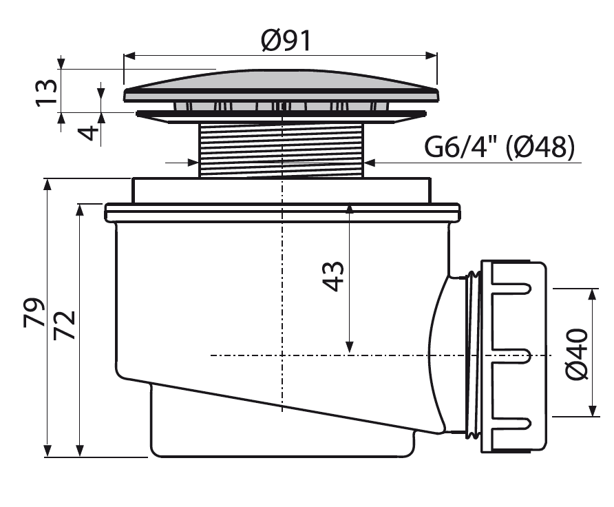 • Для душевых поддонов со сливным отверстием Ø60 мм