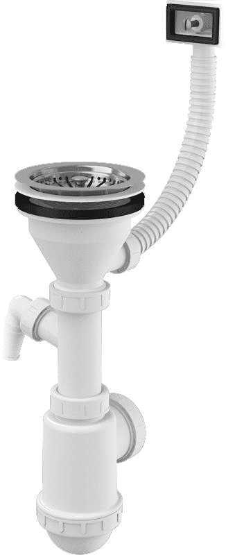 Сифон для мойки AlcaPlast с нержавеющей решеткой ?115 гофропереливом и подводкой A447P-DN50/40