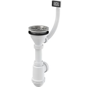 Сифон для мойки AlcaPlast с нержавеющей решеткой ?115 и гофропереливом без штуцера A447-DN50/40 купить