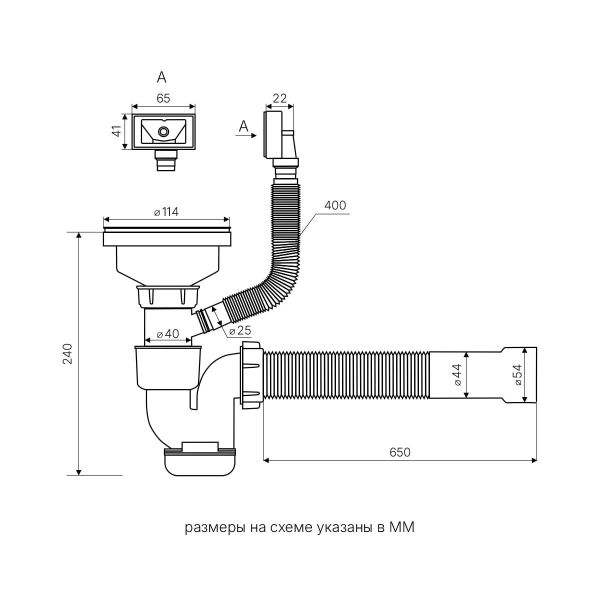Сифон для одночашевой кухонной мойки с выпуском Reflexion Arno RX3001BL оружейная сталь Подробнее