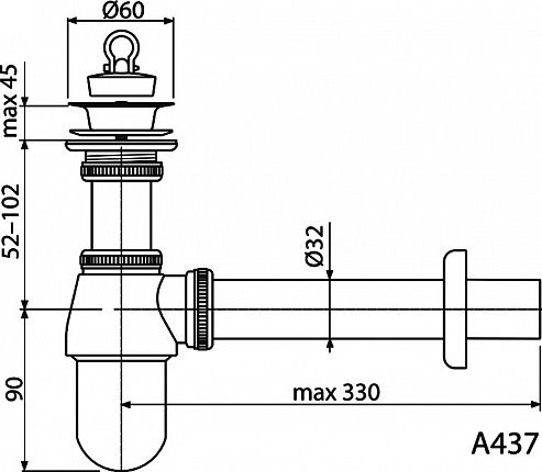 Сифон для раковины AlcaPlast 1 1/4"х32 цельнометаллический с водосливом 5/4" A437 купить