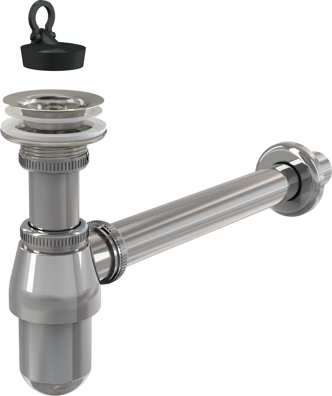 • Комплект цельнометаллического сифона и сливного клапана раковины