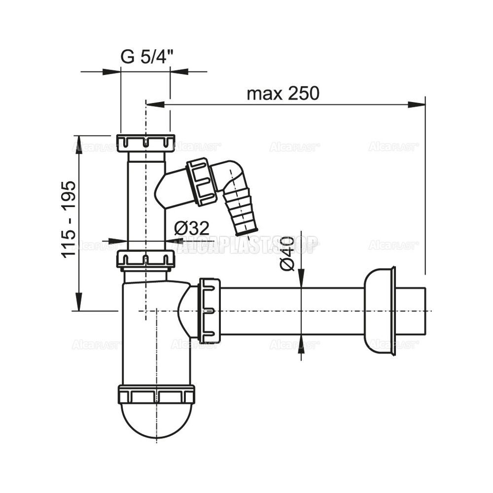 Сифон для раковины AlcaPlast ?40 с подводкой и накидной гайкой 5/4" A43P купить
