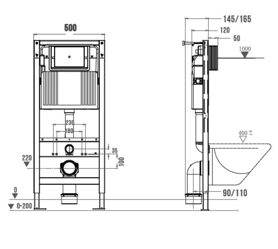 • Жесткая несущая рама из горячеоцинкованной стали 2.0 мм, монтажная пластина унитаза - 3.0 мм коррозионная стойкость по стандартам ASTM B117